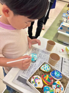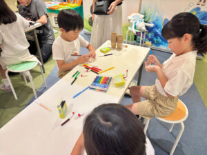 ワークショップでは、自分だけのペンダント作りに挑戦。子どもたちは真剣な表情で思い思いの作品を完成させました。