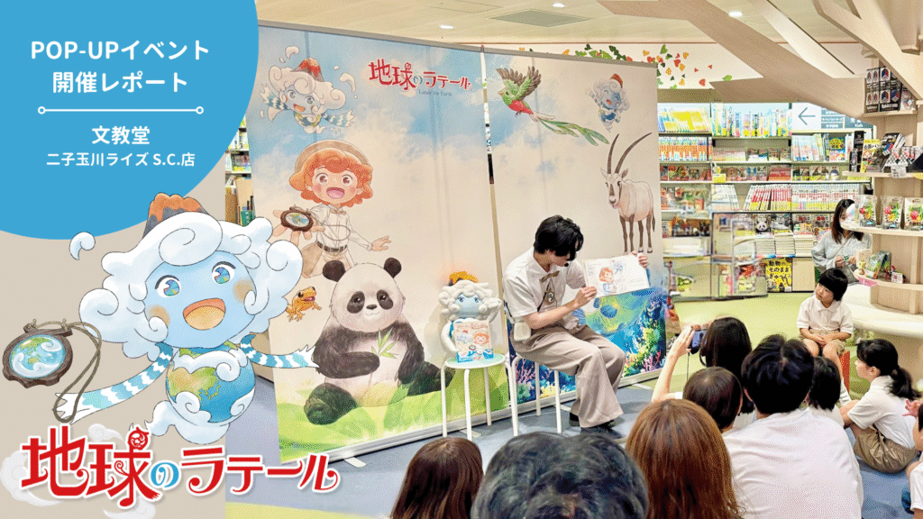CLASS EARTH株式会社(東京都中央区)と株式会社Vector Vision(東京都世田谷区)は、地球の未来を担う子どもたちに向けた教育アニメ『地球のラテール』のPOP-UPイベントを、2025年10月4日(土)文教堂 二子玉川ライズ S.C.店にて開催いたしました。